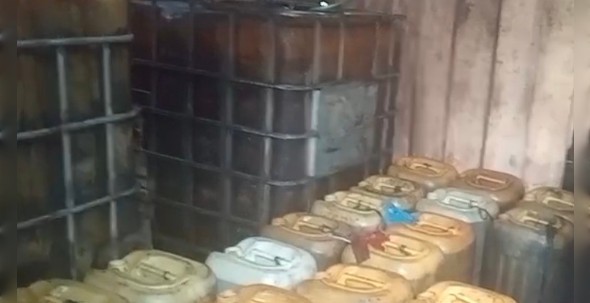 Narasumber berita menjelaskan “BBM Solar subsidi jenis disimpan di dalam Gudang dimasukkan puluhan Jerigen, diduga bahan bakar minyak (BBM) Solar didapatkan dari SPBU Sekitar. Senin /08/25).