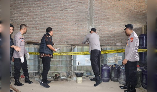“Totalnya sekitar 5.665 liter. Petugas juga mengamankan sebuah mobil dan satu unit mesin sedot yang digunakan untuk menyedot dan mengoplos BBM,” ujar Kapolres saat menggelar ekspose di lokasi penggerebekan, Jumat (10/4/2026).